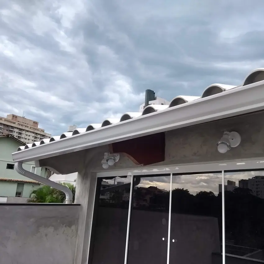Ideal para coberturas de policarbonato em áreas como lavanderias ou entradas de garagem, nossas calhas sem emendas asseguram um escoamento perfeito, protegendo a estrutura e prolongando a vida útil do material, mesmo sob exposição constante ao sol e à chuva.